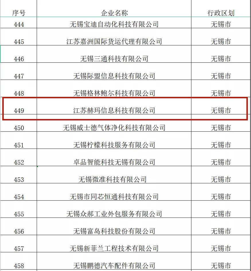 熱烈祝賀江蘇赫瑪信息科技有限公司入選2021年“無錫市雛鷹企業(yè)”、“江蘇省民營科技企業(yè)”、“江蘇省科技型中小企業(yè)”。
