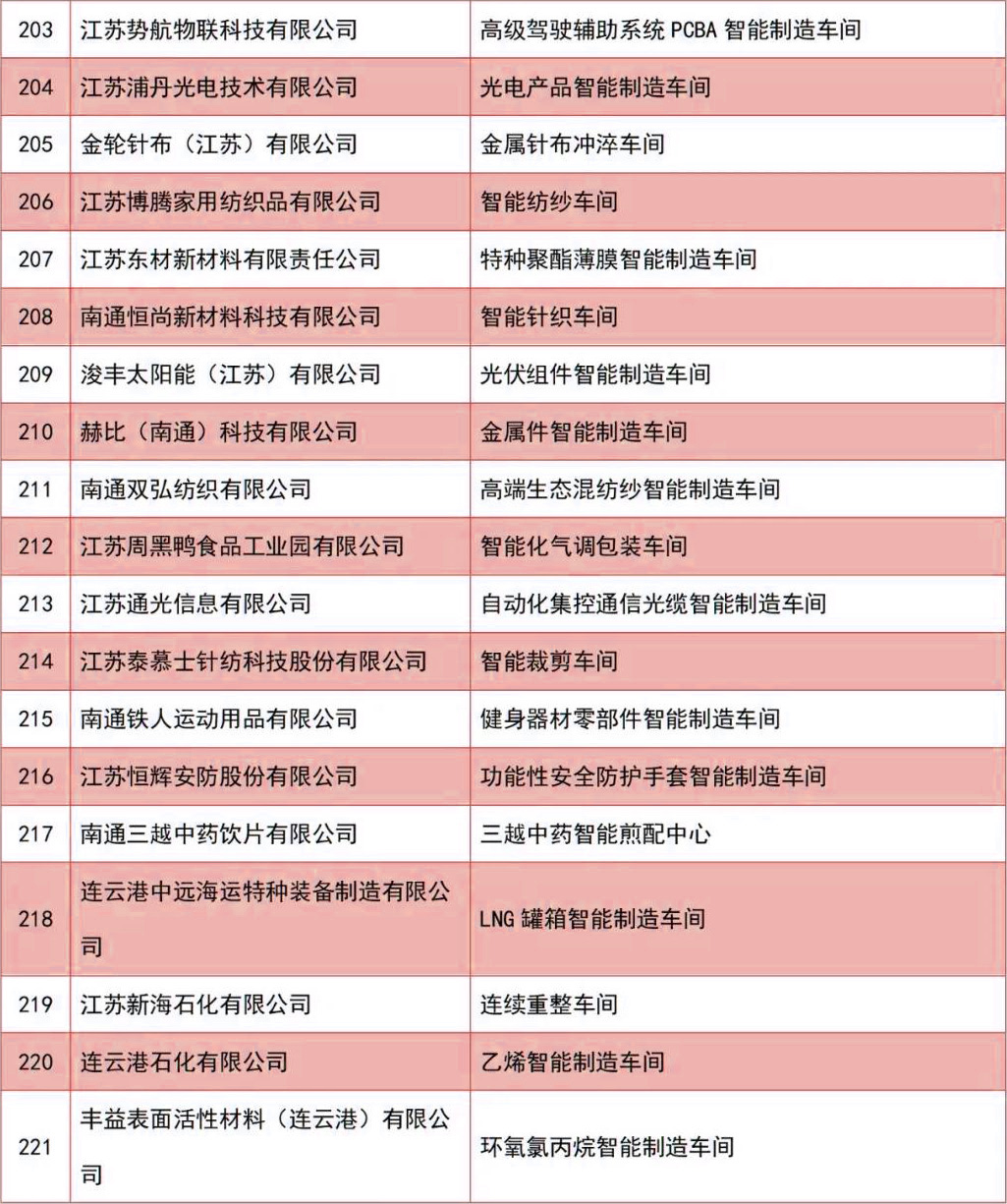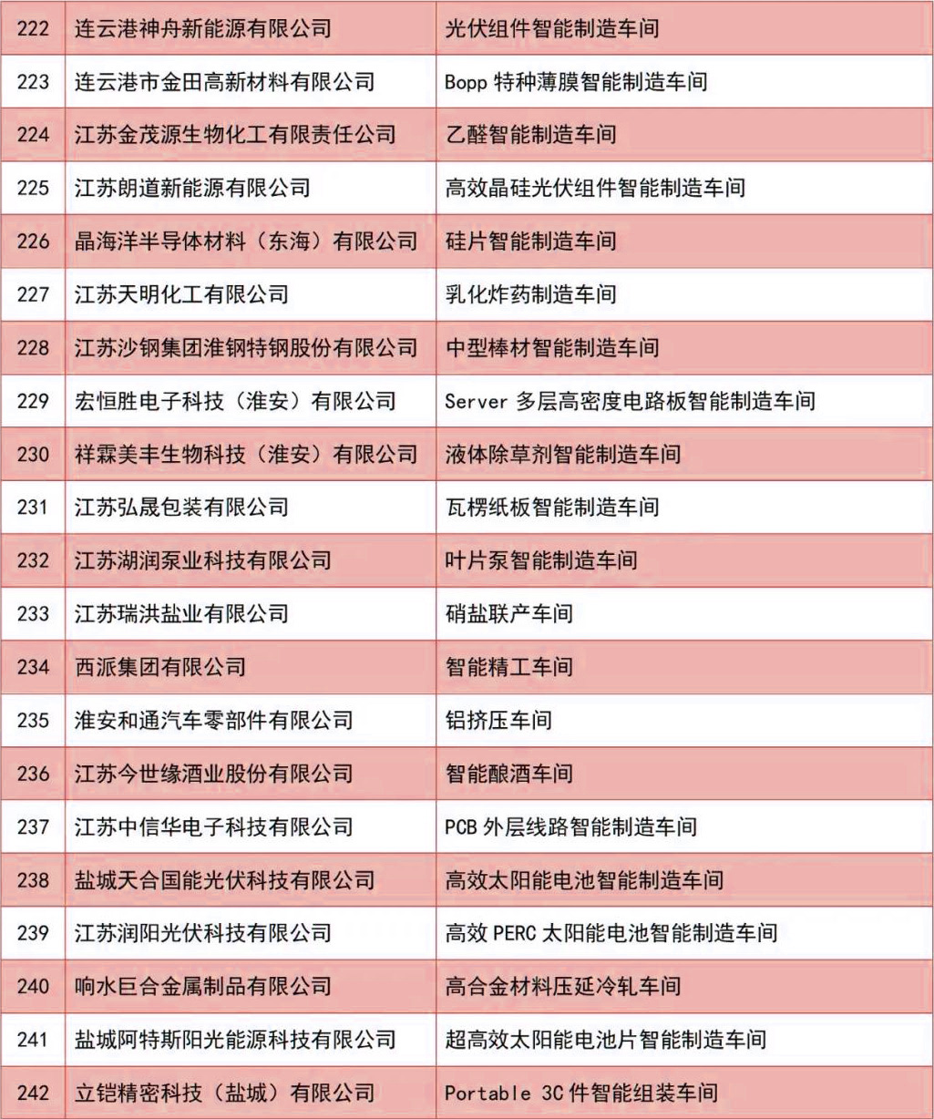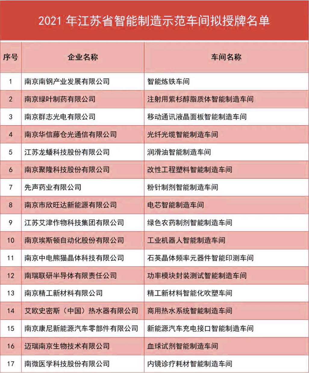 2021年江蘇省智能制造示范車間擬授牌名單公示