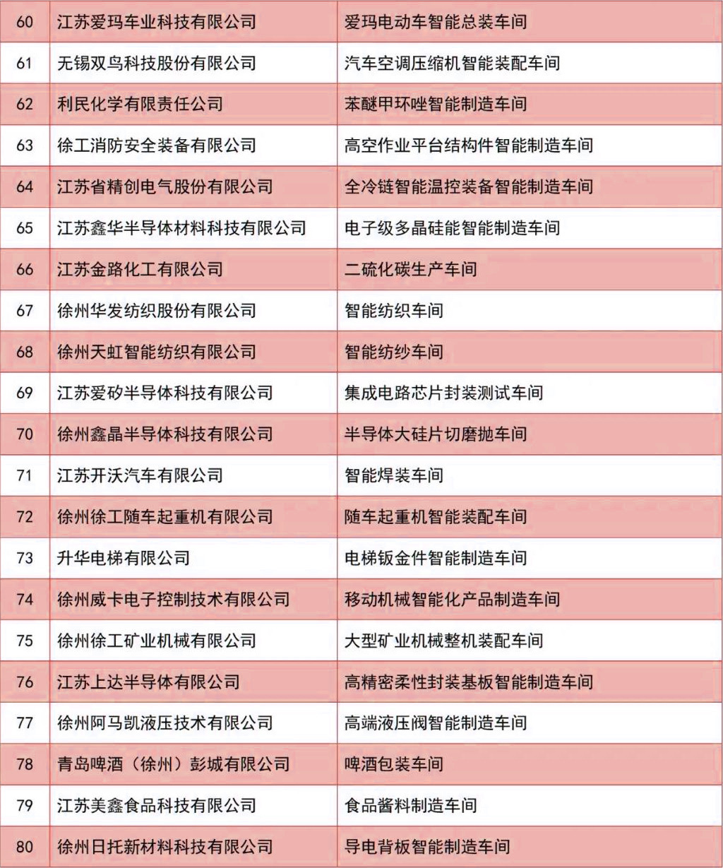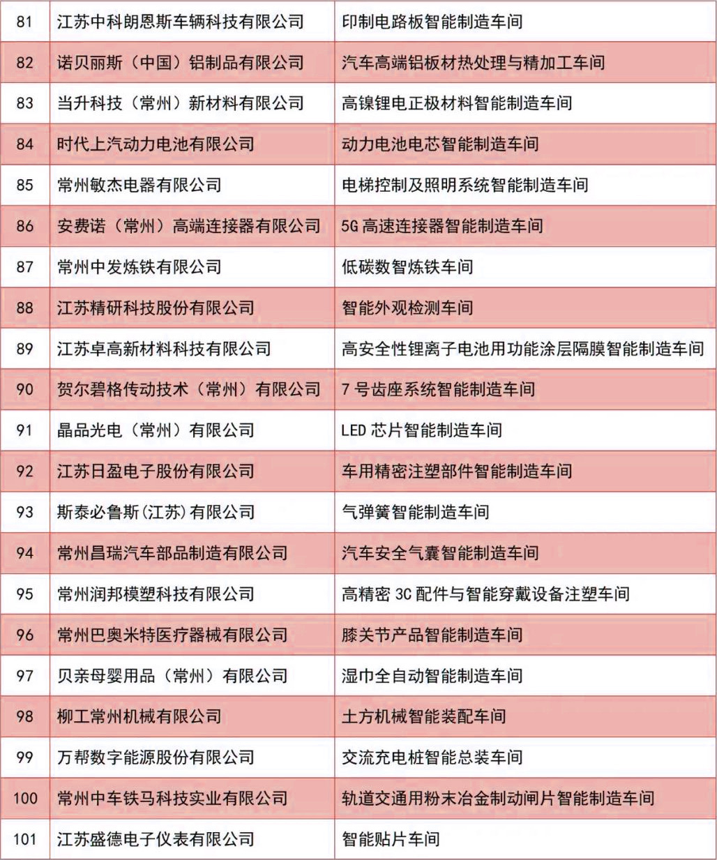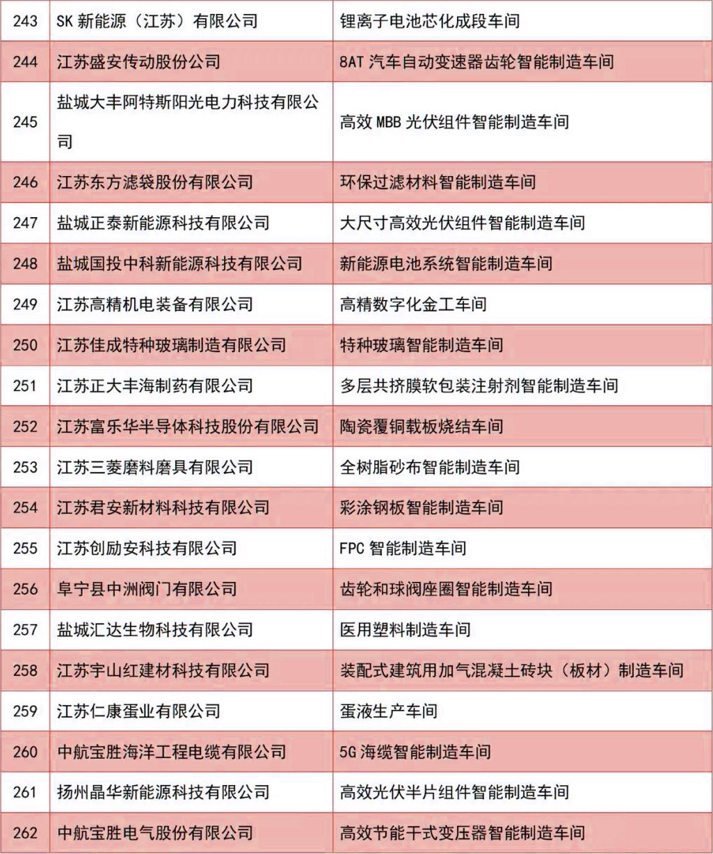 2021年江蘇省智能制造示范車間擬授牌名單公示