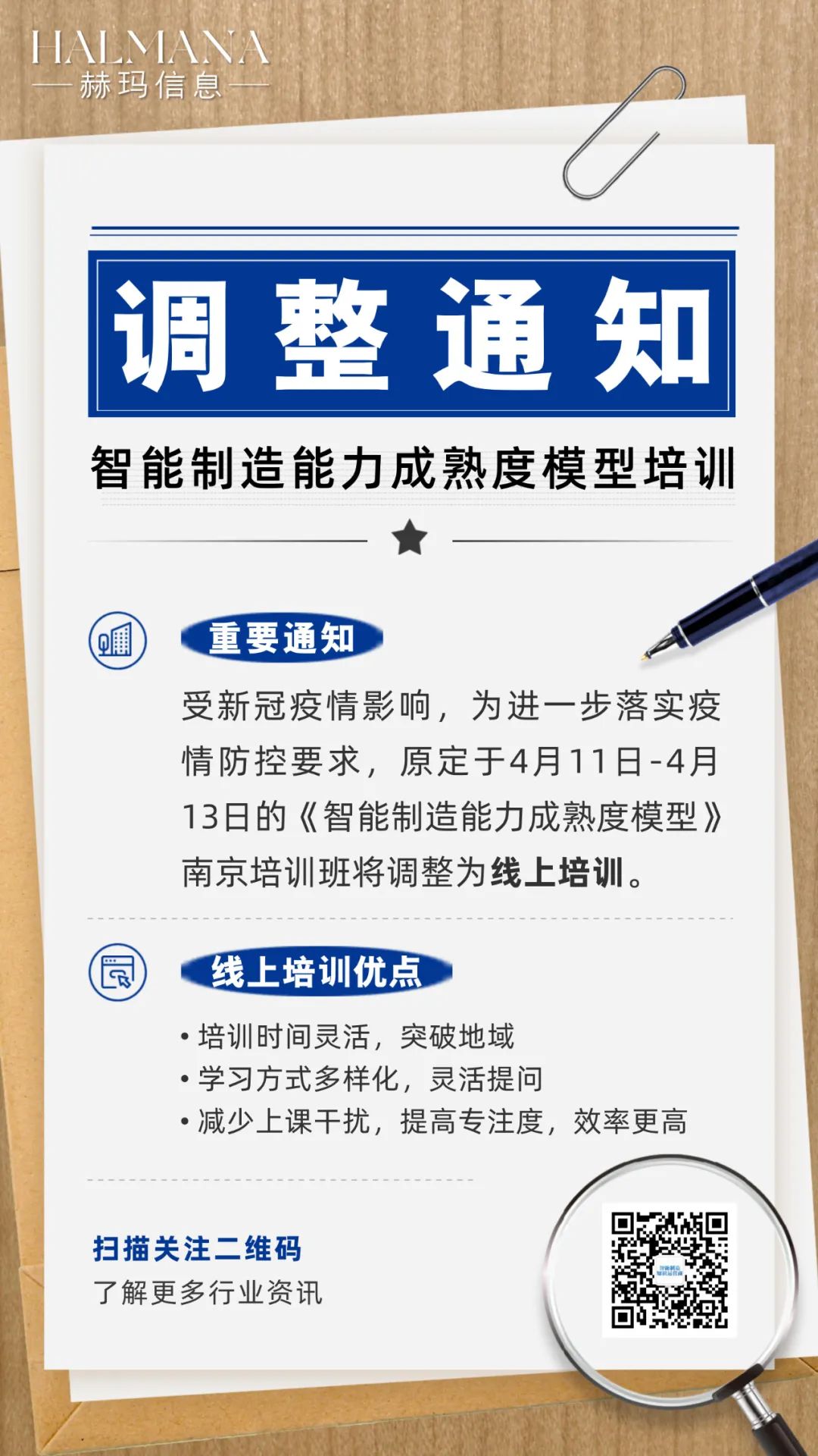 @所有人 由于疫情影響,4月智能制造能力成熟度培訓(xùn)·南京班調(diào)整為線上培訓(xùn)