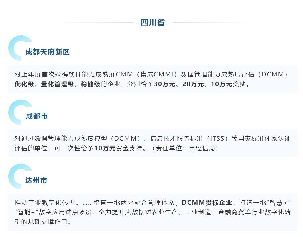 對獲得數(shù)據(jù)管理能力成熟度評估(DCMM)的企業(yè),給予最高30萬元獎勵。