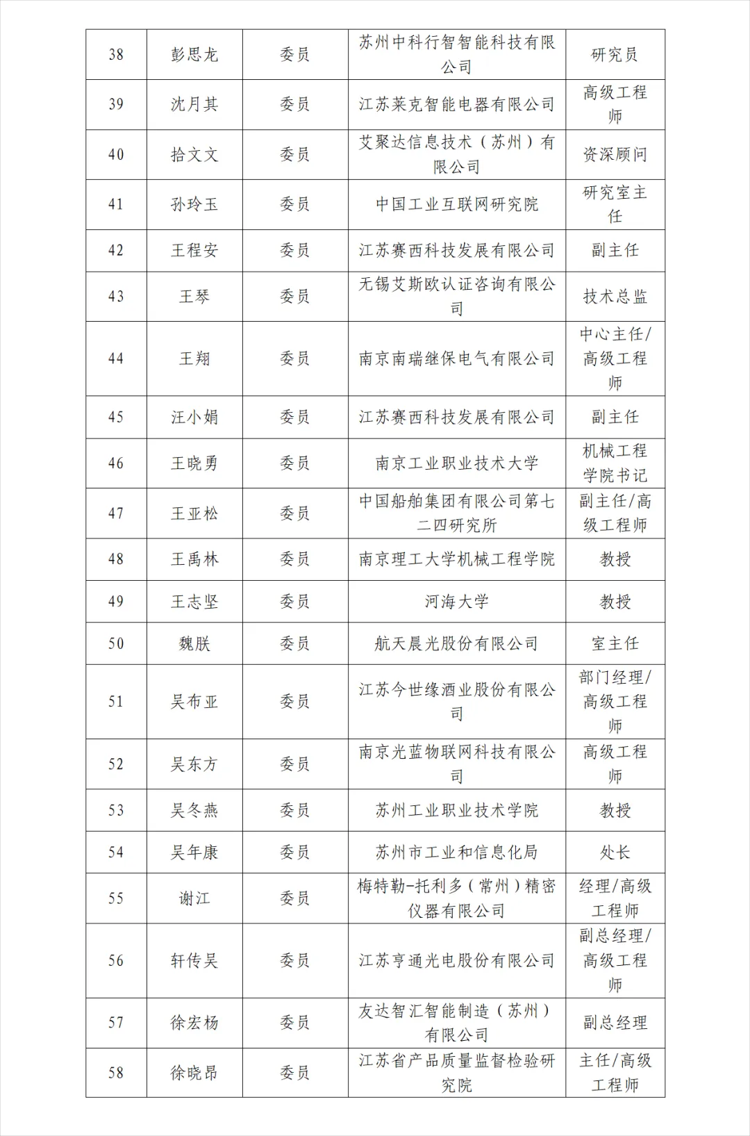 近日,江蘇省市場監(jiān)督管理局下達了同意成立江蘇省智能工廠建設(shè)標準化技術(shù)委員會的復函,編號:JS/TC82。江蘇省智能工廠建設(shè)標準化技術(shù)委員會(以下簡稱“標委會”)主要負責智能工廠的設(shè)計、生產(chǎn)、管理及集成優(yōu)化等領(lǐng)域標準化工作,由蘇州市市場監(jiān)督管理局負責日常管理和業(yè)務(wù)指導。標委會由75名委員組成(名單見附件),戴紅任主任委員,陳大紀、申高青、吳小松任副主任委員,張星星任秘書長。中國電子技術(shù)標準化研究院華東分院為秘書處承擔單位。