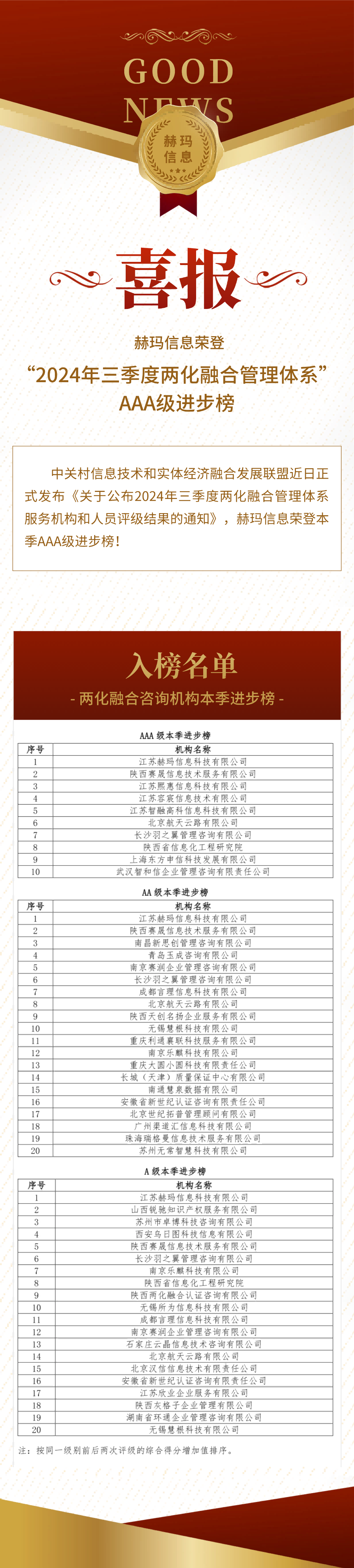 喜報 | 赫瑪信息榮登兩化融合管理體系A(chǔ)AA級進步榜!